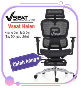Ghế Công Thái Học Vseat Helen, Gác Chân, Khung Đen, Đệm Lưới Màu Đen